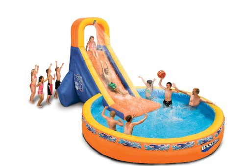 Take the plunge all summer long with the huge 22' long Banzai "The Plunge" water slide and pool. Powered by a continuous-airflow blower motor, it inflates in less than 2 minutes into one of the longest inflatable slides you'll ever see in a backyard.