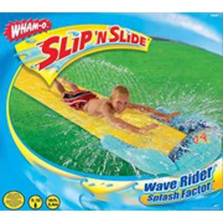 A 16-foot Wham-O water slip n slide. New Splash Factor with an extra wave of water at the end. Ages: 5 - 12