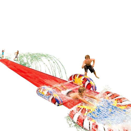 - Race down the giant 18L’ slide through a giant tunnel of water before cooling off as you slide through the 2 water-spraying blasters