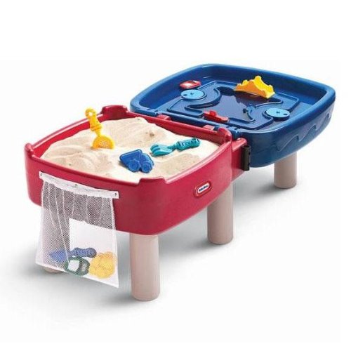 This unique play table gives little ones hours of unique play possibilities. With a sand and water section, it lets a whole group of kids explore without having to actually sit in a messy sandbox or kiddie pool.