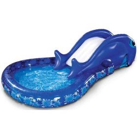 Slide down the whales back into a huge splash of water! While you slide, the whale squirts a huge spout of water for extra water park excitement. Getting soaked will be tons of fun with this cool Slide `N Splash Whale Pool!