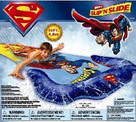 Slide, slide, slide and away! Any aspiring superhero can fly like Superman on the slippery surface of this fantastic Slip 'N Slide. There are 16 feet of fast, wet fun. Simply hook it to any standard garden hose and use the included stakes to hold flat on the ground. Takes just minutes to set up. Glide your way to big water fun in a single bound Slick yellow water slide with man-of-steel graphics Holes along the edges ensure constant water flow for faster slides Includes 4 plastic stakes, repair patch kit and instructions For ages 5?12 yrs.