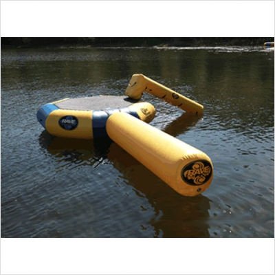 02247 Color: Blue and Yellow The leader in water sports recreation introduces the unsurpassable water toy of fun with the 13' Bongo bounce platform with Slide and Log. When the beach calls, so does the Rave Bongo. Designed for about 2 adults or 4 children bouncing at a time, there is no limit to the fun which can be had. The slide attachment means there is not just bouncing fun to be had, but slide yourself into the water at optimum speeds. Try walking on the log into the water. We bet you can't make it without falling in. There are 2 carrying handles on the Bongo platform and a 3 step aluminum ladder to get back on once you have had your time in the water.Also included is is a repair kit, hand pump, carry bag, anchor bag and inflator adaptor.(Inflator itself not included) Features: -Price includes Bongo Bounce Platform,slide,log, ladder, PVC Repair Kit and Inflator Adaptor -2 carrying handles -9'decagon Jumping Surface -Accommodates 2 adults or 4 children bouncing at a time -3 step aluminum ladder -UV inhibitors are specially blended into the chemistry of PVC materials to reduce fading -Lifetime warranty against material failure or faulty workmanship Bongo Trampoline Specifications: -Water depth required: 8 ft -Inflated product dimensions:13 diameter, 26 high -Weight:50 lbs -Recommended anchoring:35 lbs Small Aqua Slide Specifications: -Dimensions:2' high, 2' wide, 7' long -1 adult or child can be accommodated at a time -Weight:16 lbs -The small Aqua Slide can be attached to the Aqua Jump 10 jr., Aqua Deck, Bongo 10, and Bongo 13 Small Aqua Log Specifications: -Tube Dimensions:26'' diameter, 20' long -Accomodates 2 people at a time -attach to Aqua Deck, 10' Aqua Jump, 10' Bongo Bongo Product Video