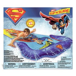 Slide, slide, slide and away! Any aspiring superhero can fly like Superman on the slippery surface of this fantastic Slip 'N Slide. There are 16 feet of fast, wet fun. Simply hook it to any standard garden hose and use the included stakes to hold flat on the ground. Takes just minutes to set up.