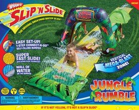 Wham-o Slip 'N Slide Jungle Rumble. The Original Backyard water slide Rider. For ages 5 to 12. 20 foot slide area. Includes inflatable arch with palm trees.
